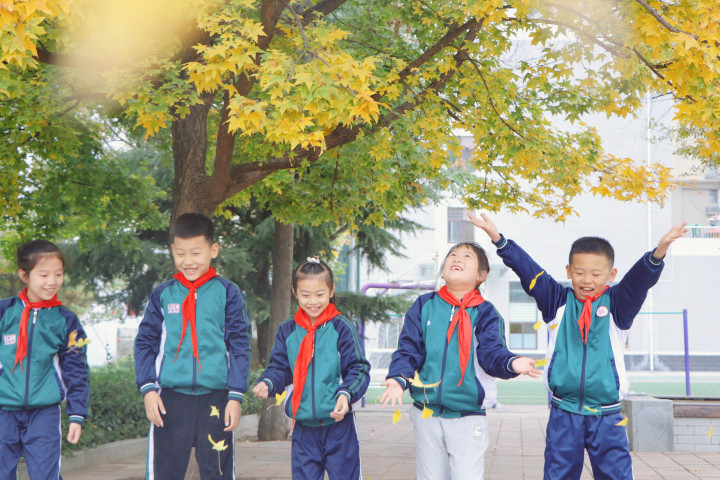 山东省泰安市岱岳区岳峰小学学生在玩耍。